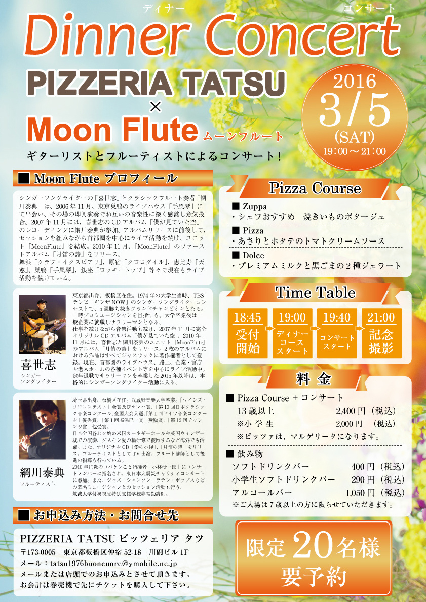 PIZZERIA TATSU FACEBOOKでご覧下さい。