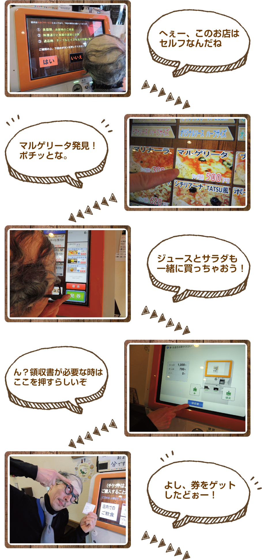 1. 当店は、タッチパネル式券売機を使用しております。(ピザ屋では、日本初!)